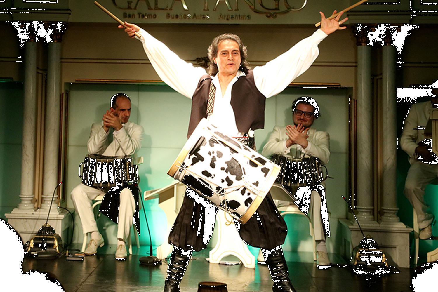 探戈和民俗表演持续约一个半小时,共有19 位才华横溢的艺术家登台献艺。管弦乐队由钢琴、手风琴、克里奥尔吉他、小提琴和低音提琴五重奏组成,伴奏乐器包括两名探戈歌手、四对舞伴和一名安第斯传统音乐家。演出还包括boleadoras 表演,让人感受到高乔文化的活力和技巧。