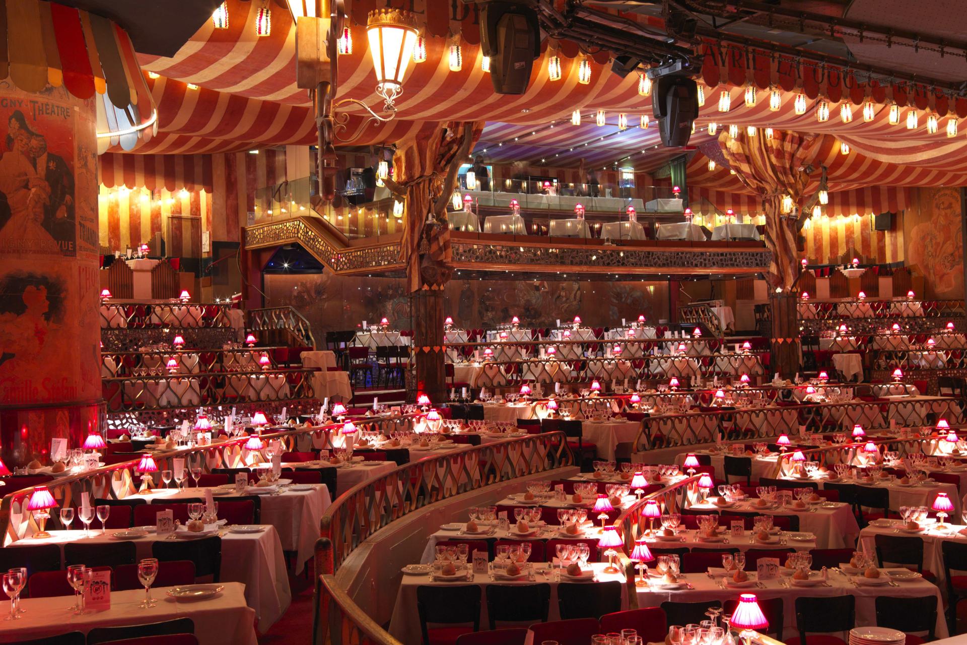 - 在充满传奇色彩的巴黎红磨坊享用三道菜晚餐。