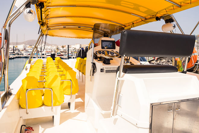 富埃特文图拉的这次海豚和鲸鱼观赏之旅,对于那些希望以刺激、真实的方式体验大海的人来说,是一次完美的建议。体验之旅从莫罗哈博港(Puerto de Morro Jable)开始,在那里您将登上 "神奇海豚号"(Magic Dolphin),这是一艘速度快、设备齐全的游船,专为小团体提供舒适的出游体验。